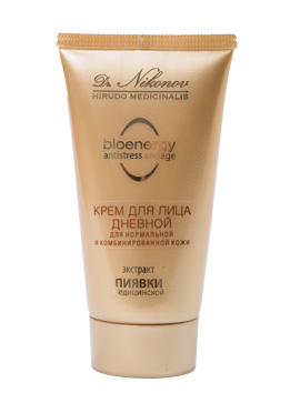 Biologically active substances of a medicinal leech in combination with starch polysaccharides, Chinese rose milk, vitamins A, E, F and C, oils of olive, grape seed, peach, shea butter, extracts of lotus, bamboo, water lily, oats, cornflower and D-panthenol, intensively moisturize and tighten the skin of the face, nourish, tone, restore natural regeneration, increase turgor and skin elasticity.